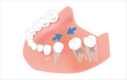 本来あるべきところに歯が無い状態を長期間放置すると、歯が前後に倒れてきたり、噛みあう歯が歯の無い所に伸びてきてしまったりと言った正常なかみ合わせができなくなります。